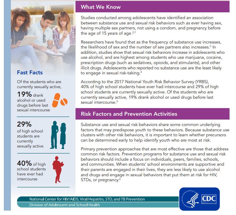 The CDC says in their resource that for primary prevention activities targeting substance use and sexual risk behaviors to be effective, they should include “Peer-led drug and alcohol resistance programs”.
