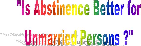 In today’s climate where HIV is rampant, values are distorted and respect is lacking, abstinence until marriage is better for unmarried persons.  I believe abstinence is better for unmarried persons because intimate relationships have consequences.  People who are considering sex and intimacy must remember that every action has a reaction and a consequence.  Males and females that remain abstinent until marriage are sending a clear message that they want to be respected and that they have respect for themselves and others.  They are also showing that they choose “life”.