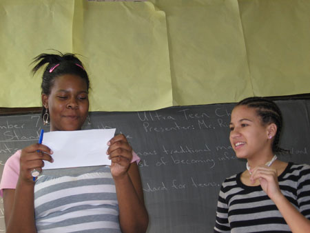 ULTRA Teen Choice Service Clubs are lead by STAR (Students Teaching Abstinence & Responsibility) Guides from Howard University, Catholic University, and Comprehensive Health Academy. Eighth grade clubs kicked off on October 30 at Kramer Middle School, and on November 2 at Stuart-Hobson Middle School, with about 15 youth attending each club. Students got to know each other better, and trained to be peer counselors. |